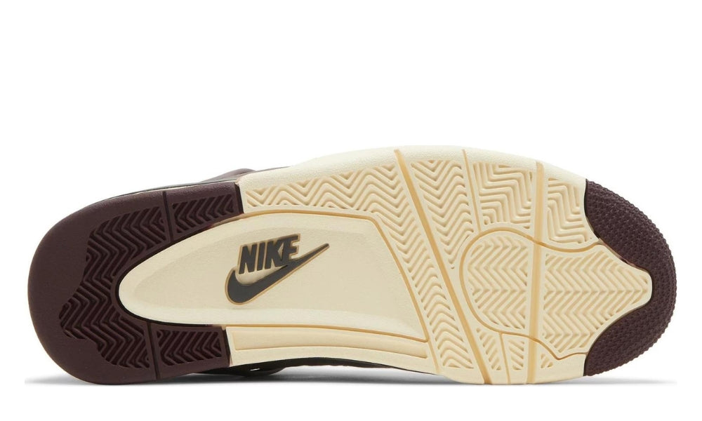 The A Ma Maniére x Air Jordan 4 Retro ‘Violet Ore’ delivers an elevated take on the legacy silhouette. The Atlanta-based retailer dresses the mid-top in a muted purple nubuck upper, accented with tonal quarter panel netting and a decorative chrome rivet embedded in the lateral collar. Woven Flight tongue tags display mismatched Jumpman and A Ma Maniére branding, while molded black heel tabs feature a raised Nike Air logo. Inscribed across the interior side of each heel tab is the phrase ‘It’s not about the shoes … it’s about where you’re going.’ Quilted textile lines the collar and insole for a comfortable fit. The sneaker rides on a cream-colored polyurethane midsole with visible Air-sole cushioning in the heel.